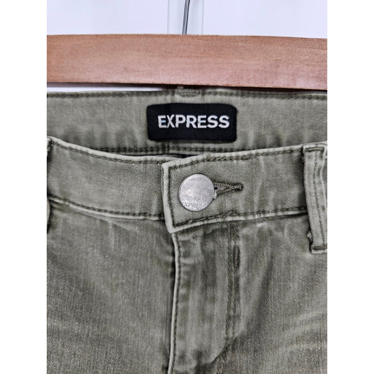 Express Womens Sz 6 Mid Rise Ankle Legging Jeans Olive Green Distressed