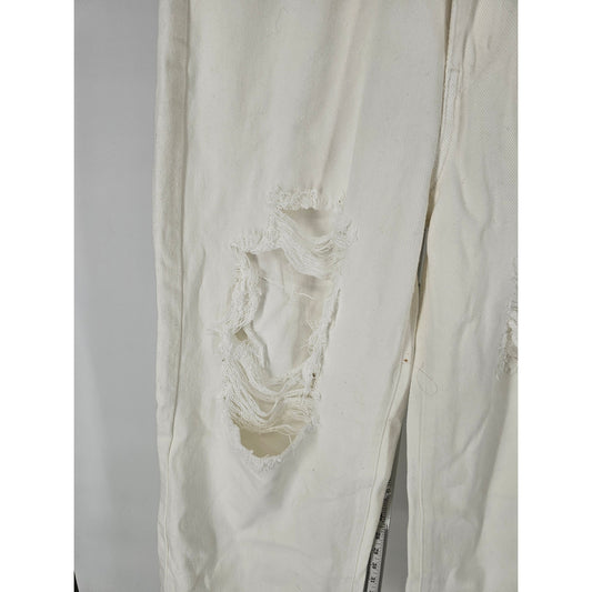 Shein Womens Sz M Ultra Wide Leg High Waist White Distressed Jeans Y2K Inspired