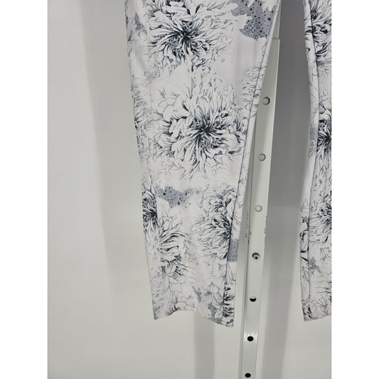 Jockey Womens Sz L Cropped Compression Athletic Leggings Black White Floral