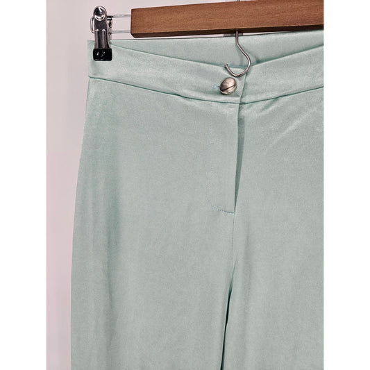 Womens Sz L High Waist Satin Slim Leg Pants Seafoam Light Green Blue