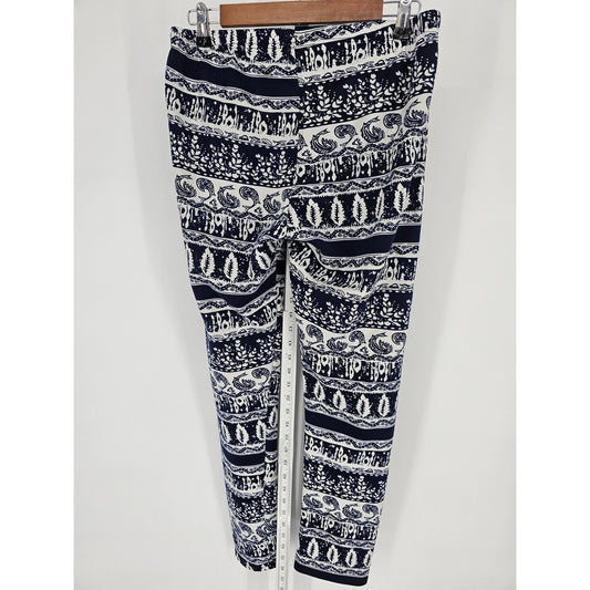 J Jill Womens Sz 10 Essential Cotton Pull On Pants White Blue Floral