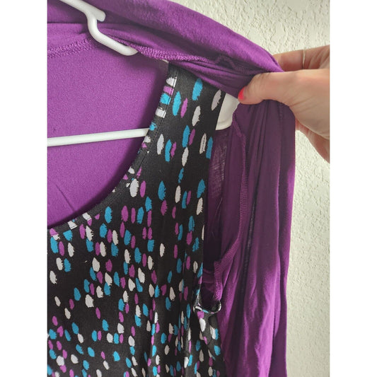 Motherhood Maternity Womens Sz M Cardigan Blouse One Piece Purple Polka Dot