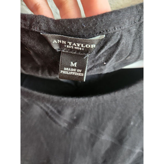 Ann Taylor Womens Sz M Solid Black Cotton T Shirt Ruffled Shoulder