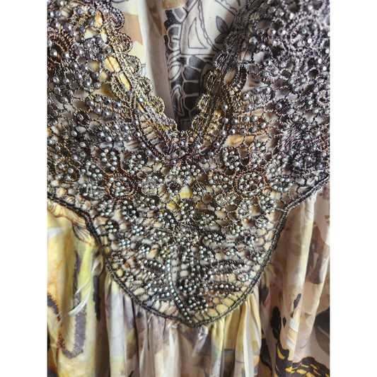 Vintage Y2K Apt 9 Womens Sz L Butterfly Print Blouse Beaded Neckline