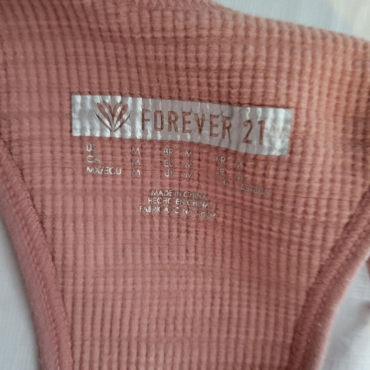 Forever 21 Womens Sz M Cropped Waffle Knit Tank Top Fitted Blush Pink