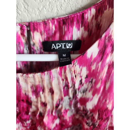 APT 9 Womens Sz M Sleeveless Blouse Pink White Gray Tie Side