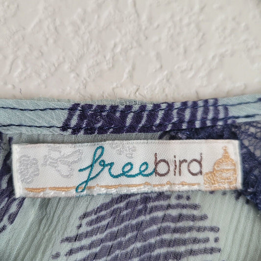 Freebird Womens Sz S Semi Sheer Tank Top Blouse Blue Flowy lace Trim