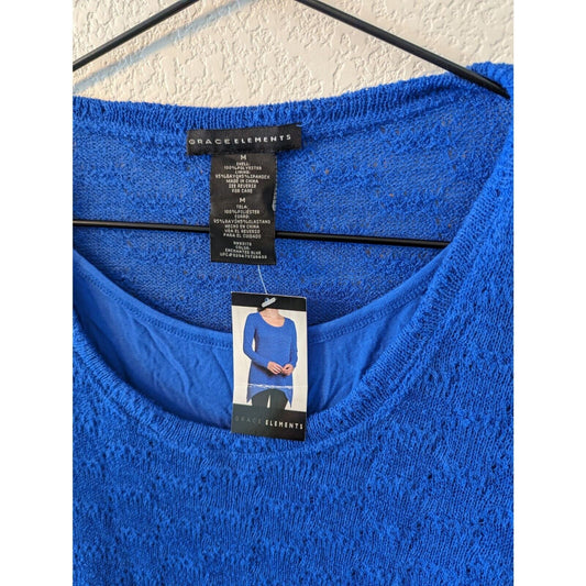 Grace Elements Womens Sz M Long Sleeve Layered Blouse Blue NEW