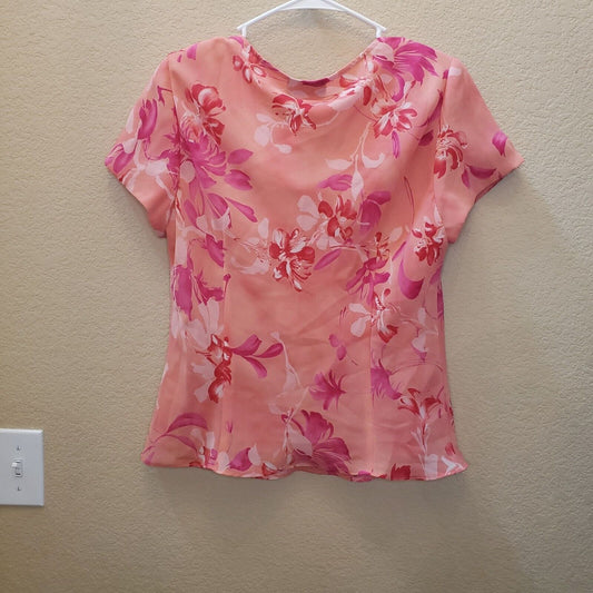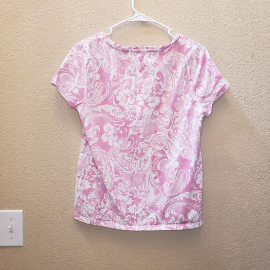 Chaps Womens Sz M Scoop Neck T Shirt Pink Paisley Floral Cotton