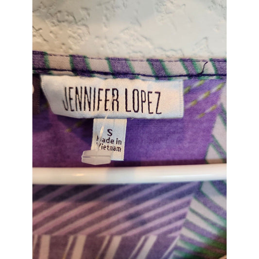 Y2K Jennifer Lopez Womens Sz S 3/4 Sleeve Scoop Neck Blouse Purple Print