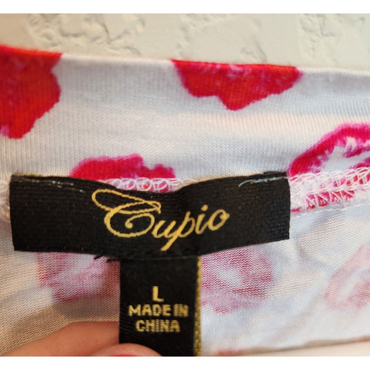 Cupio Womens Sz L Short Sleeve V Neck T Shirt Lips Kiss Face Y2K