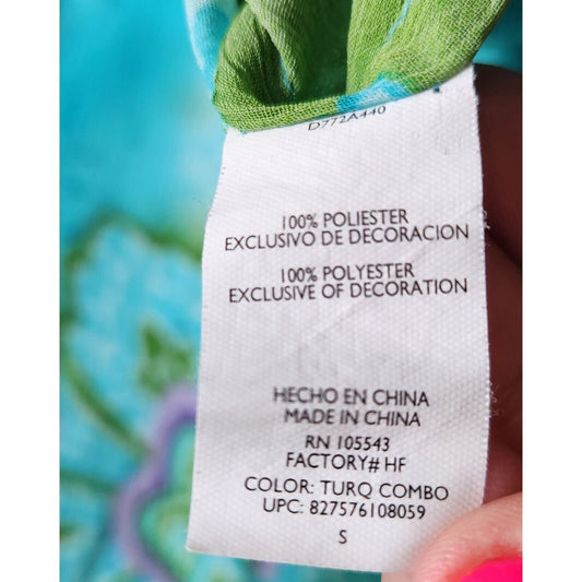 Vintage Y2K Womens Sz S Lightweight Long Sleeve Teal and Green Floral Blouse