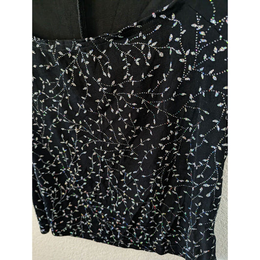 Vintage 1990s Dressbarn Womens Sz M Black Glitter Formal Blouse