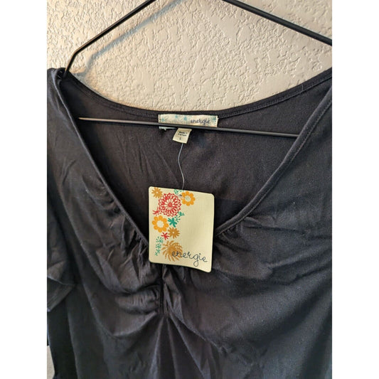 Vintage Y2K Energie Womens Sz L Solid Black Flutter Sleeve Blouse NEW