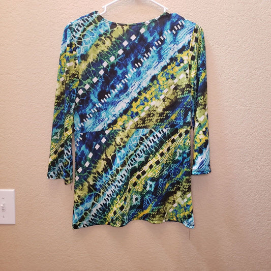 Jason Maxwell Womens Sz M Long Sleeve Blouse Blue Green Animal Print