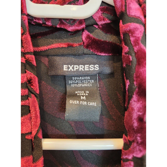 Vintage Y2K Express Womens Sz M Sleeveless Blouse Red Rose Zebra Print Scoop