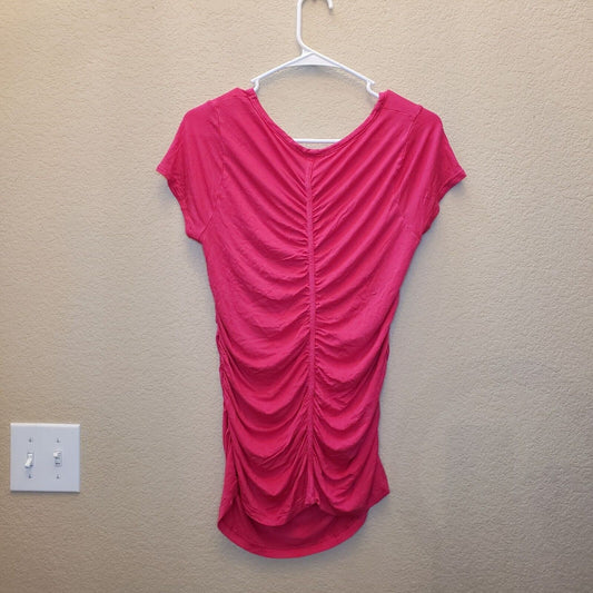 Design History Womens Sz L Short Sleeve Tunic shirt Bright Pink Barbie Core