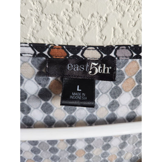 Vintage East 5th Womens Sz L Short sleeve Geometric Print Blouse Black Brown