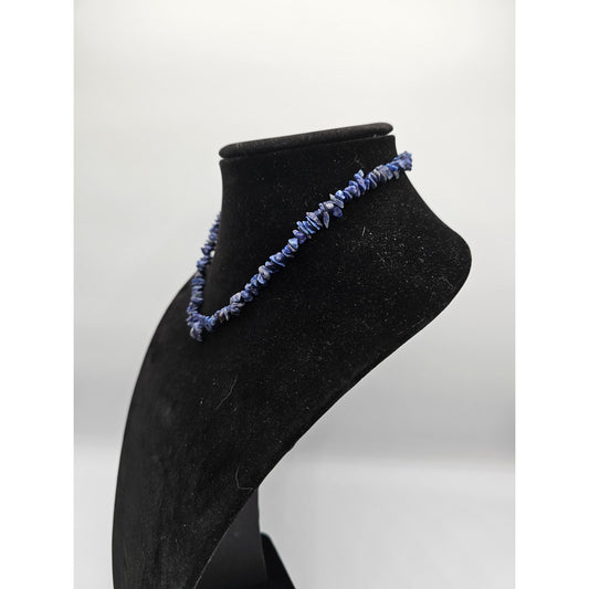 Vintage 1990s Single Strand Chip Stone Necklace Blue Gray