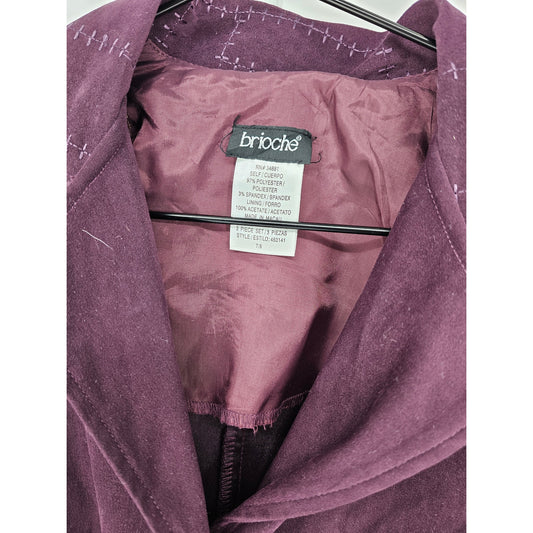 Vintage Brioche Womens Sz 8 Purple Velvet Jacket Blazer 1990s