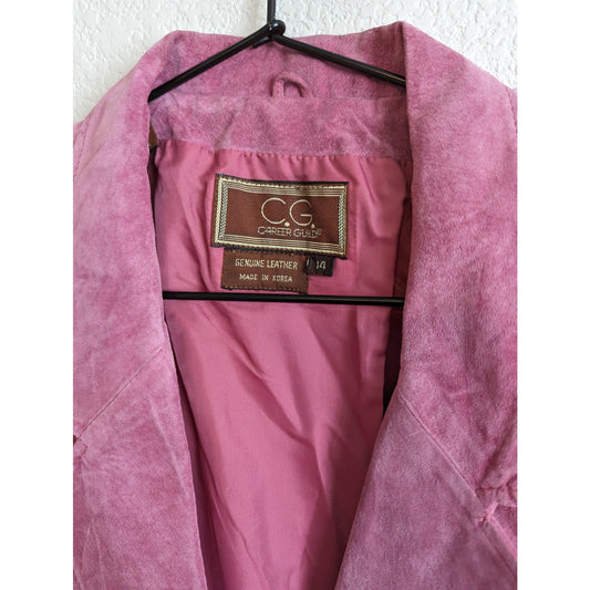 Vintage Career Guild Womens Szx 14 Pink Leather Suede Blazer 2 Button