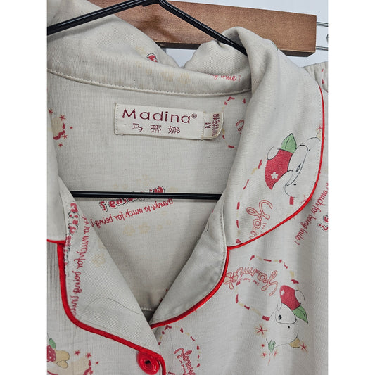 Vintage Medina Womens Sz M Long Sleeve Cotton Pajama Set Wish Wing Anime