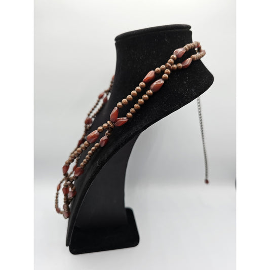 Vintage Mid Century 1960s Womens Single Strand Wooden Beaded Necklace Red Brown