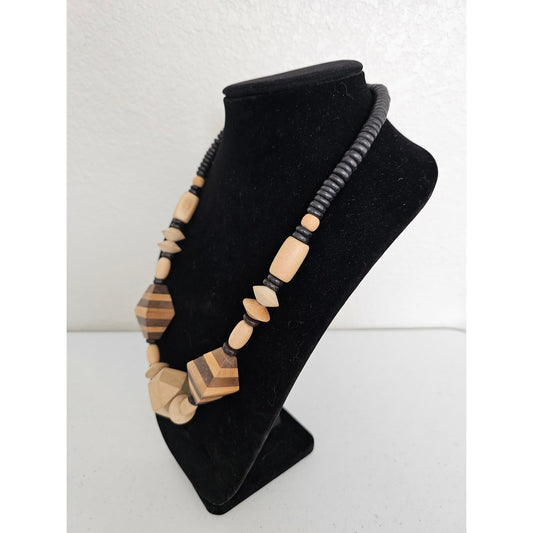 Vintage Mid Century Chunky Wooden Beaded Necklace Brown Geometric