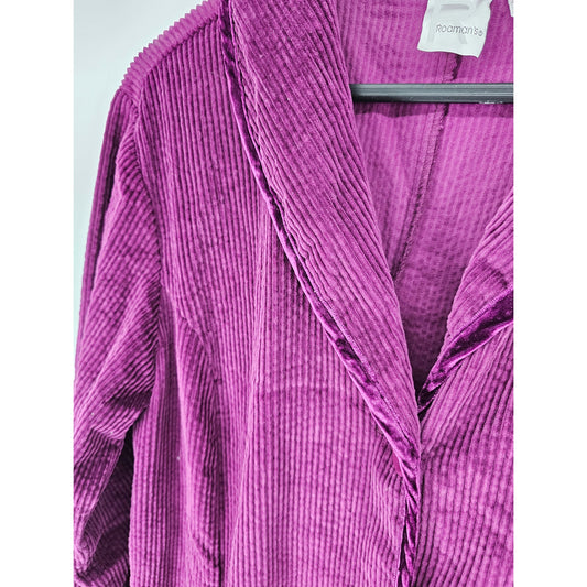 Vintage Roamans Womens Sz 18W 3 Button Blazer Corduroy Velvet Trim Royal Purple