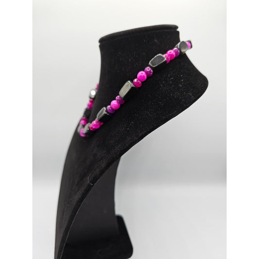 Vintage Single Strand Glass Beaded Necklace Purple Pink
