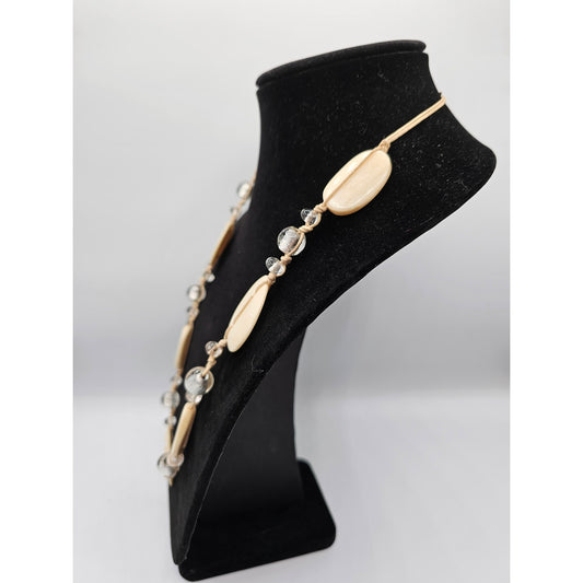 Vintage Single Strand Nautical Knotted Rope Beaded Necklace Cream Stone Glass