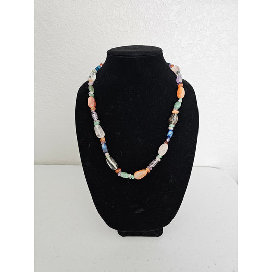 Vintage Single Strand Polished Stone Necklace Colorful Art to Wear