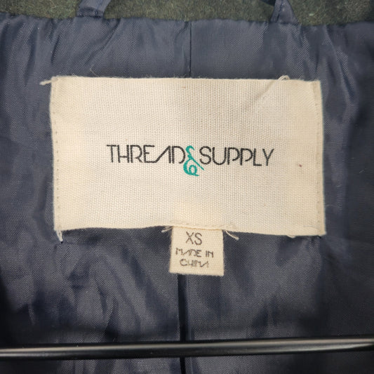 Thread & Supply Womens Sz XS Hip Length Double Breasted Coat Olive Green Wool