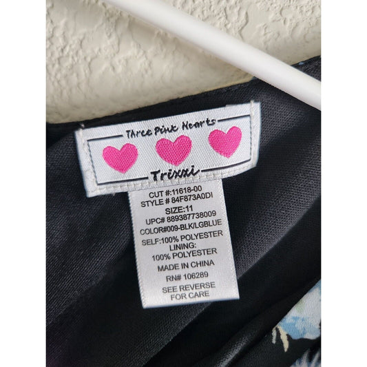 Three Pink Hearts Juniors Sz 11 Above Knee Dress Blue Black Floral