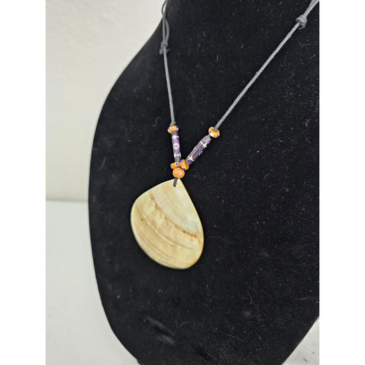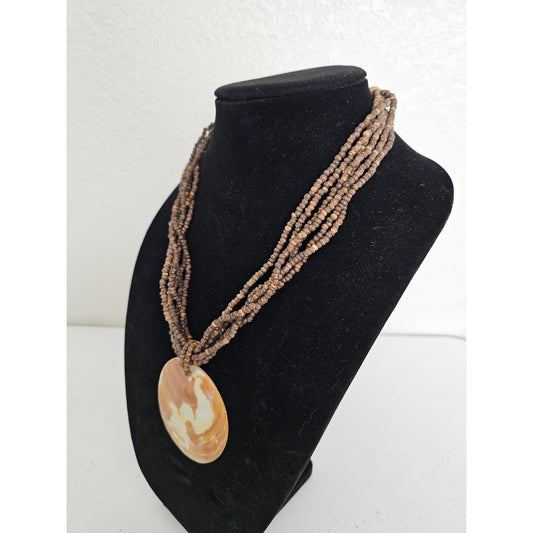 Vintage 1970s Boho Mother of Pearl Shell Pendant Necklace Beachy