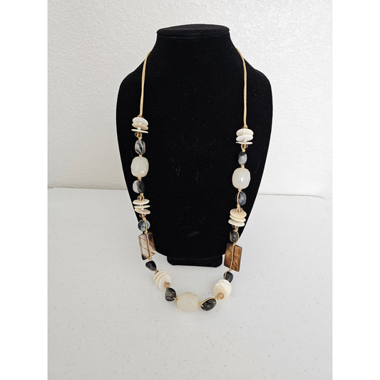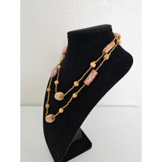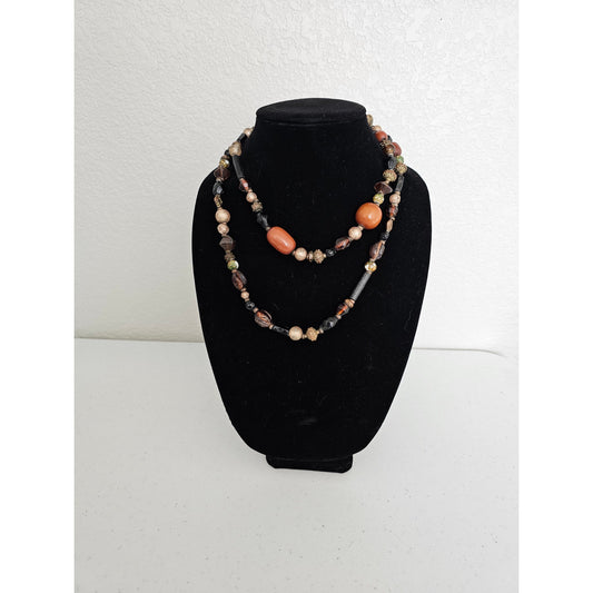 Vintage Mid Century Single Strand Necklace Brown Beige Copper Tone Beads