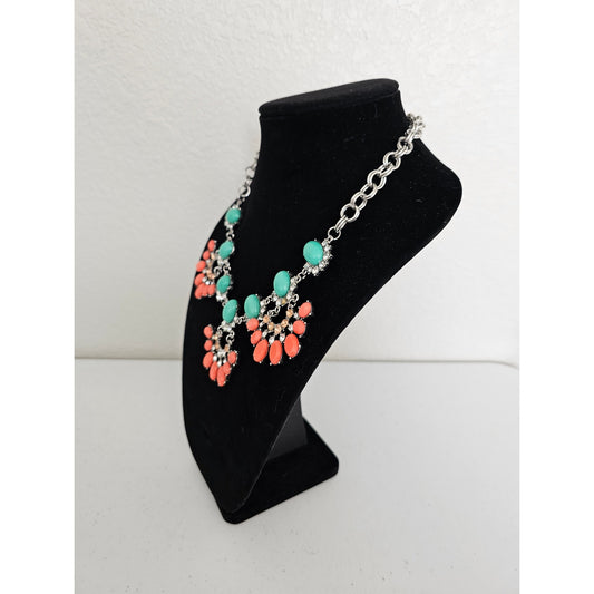 Vintage 1980s Statement Piece Necklace Coral Pink and Turquoise Stones