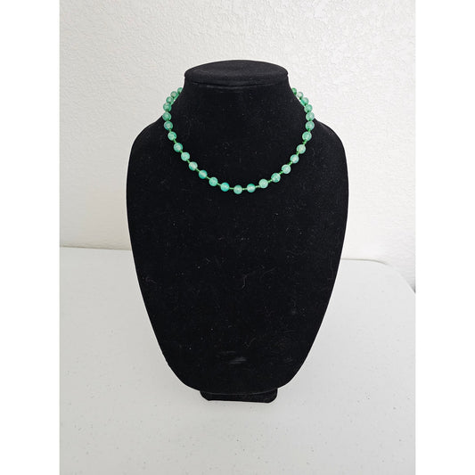 Vintage Single Strand Glass Beaded Necklace Green Round Beads