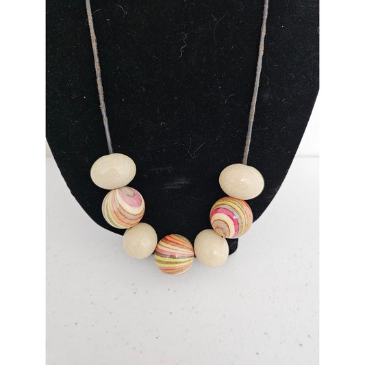 Vintage 1990s Chunky Round Beaded Necklace Rope String Cream Pink Striped