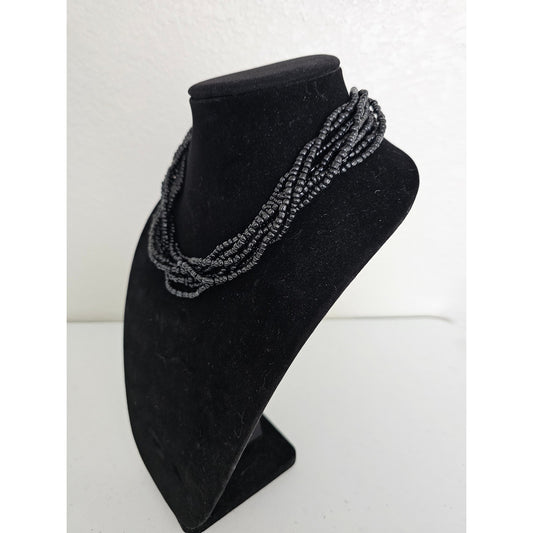 Vintage Multi Strand Seed Bead Necklace Solid Black Artisian