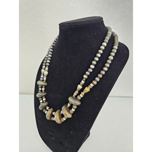 Vintage 2 Strand 1970s Metallic Beaded Necklace Bronze Silver Brown