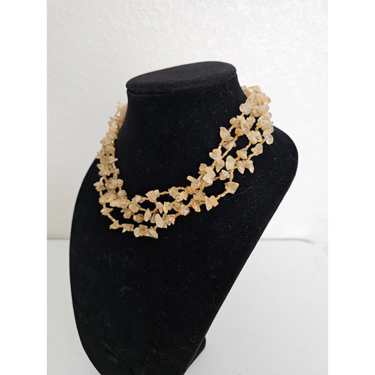 Vintage Mid Century Multi Strand Chip Stone Necklace Light Amber