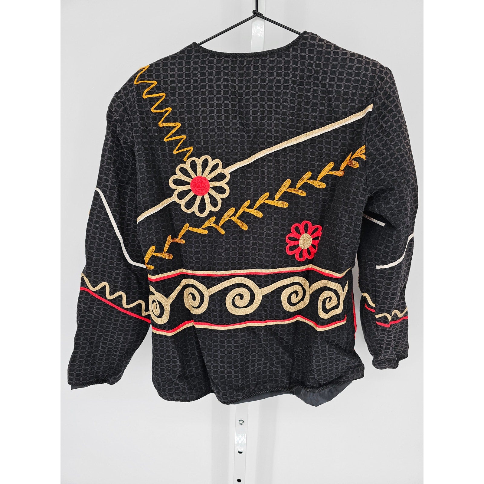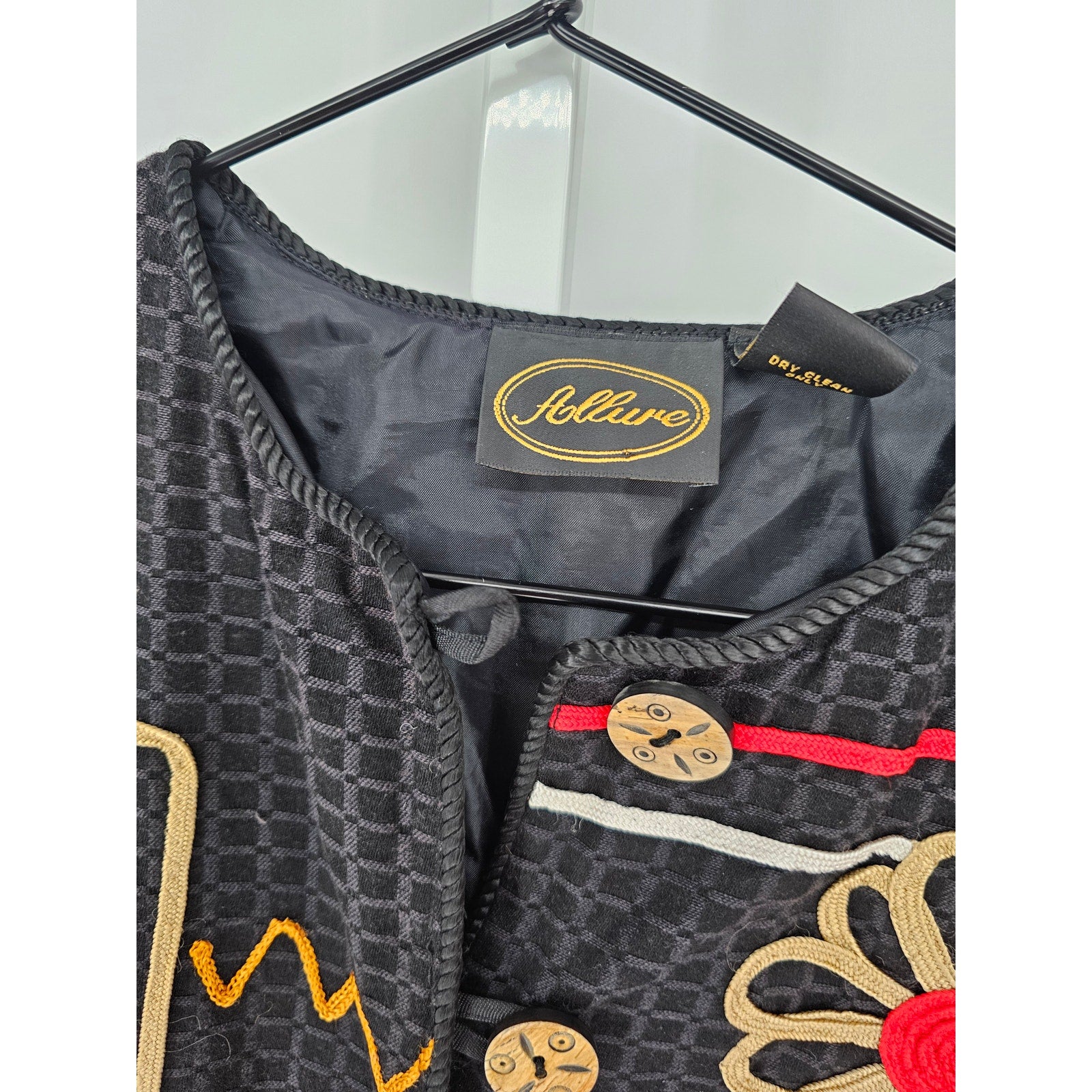 Allure Red Gold Black Floral Long Sleeve 80's Jacket Blazer Womens Sz S