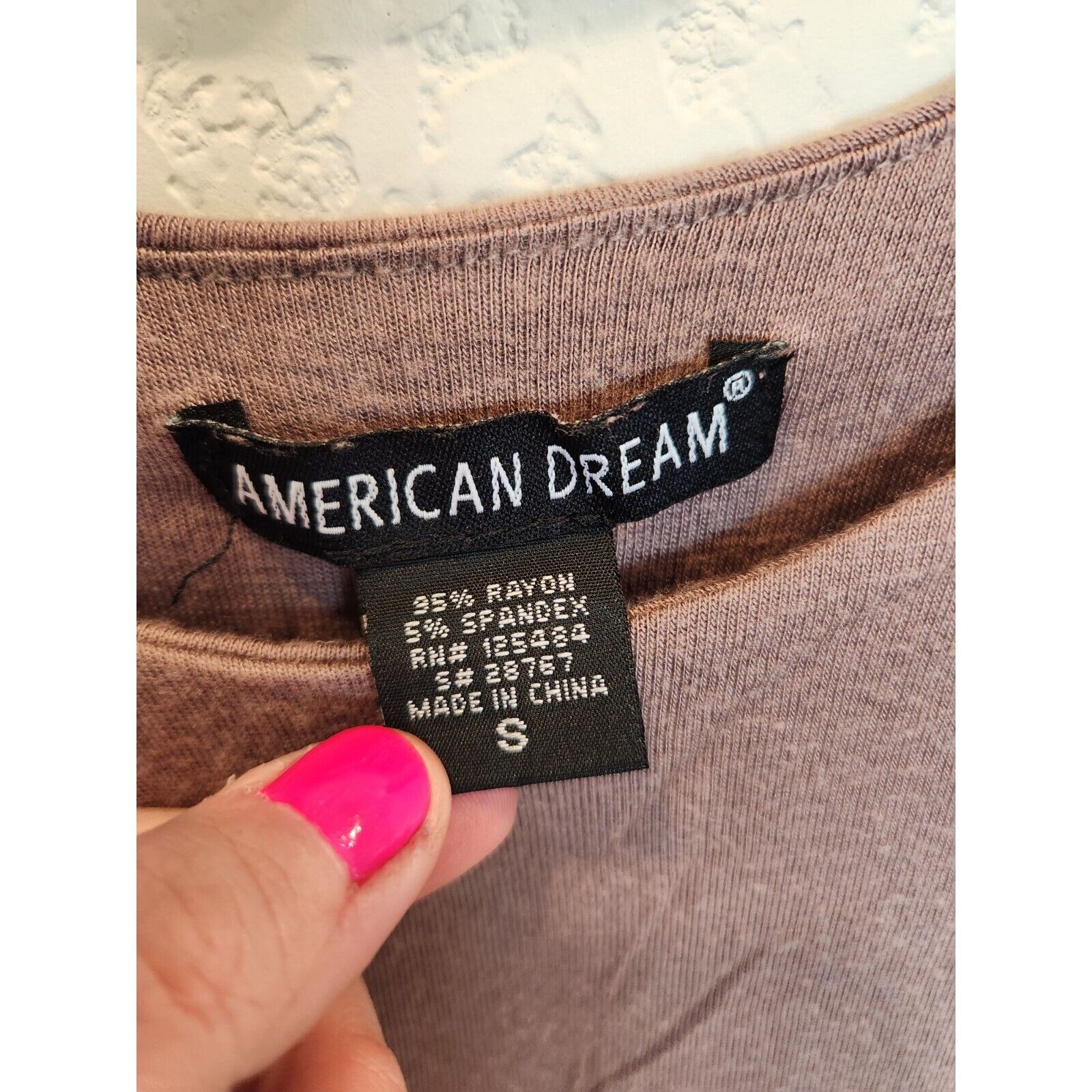 American Dream Womens Sz S Midi Shirt Dress Light Brown Taupe