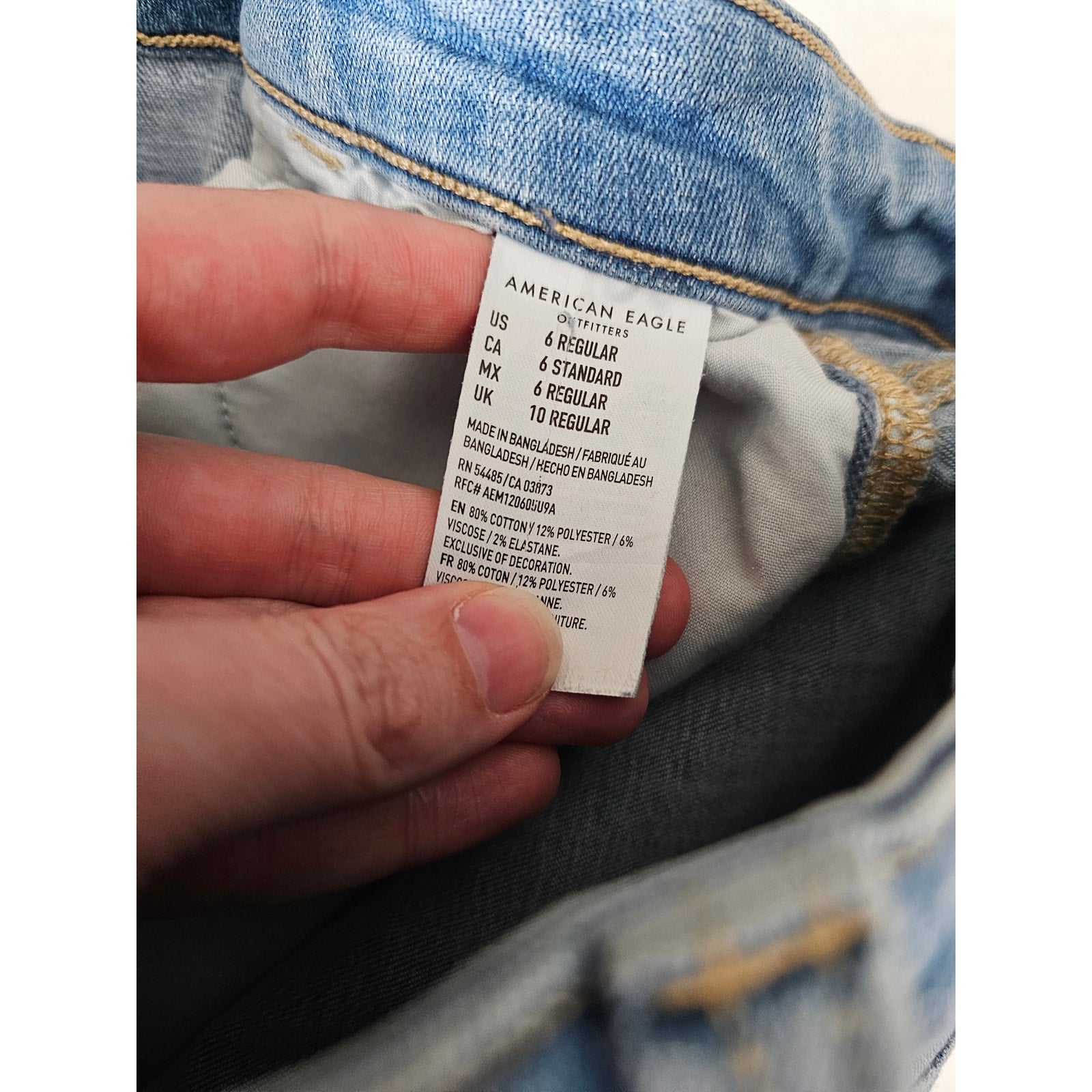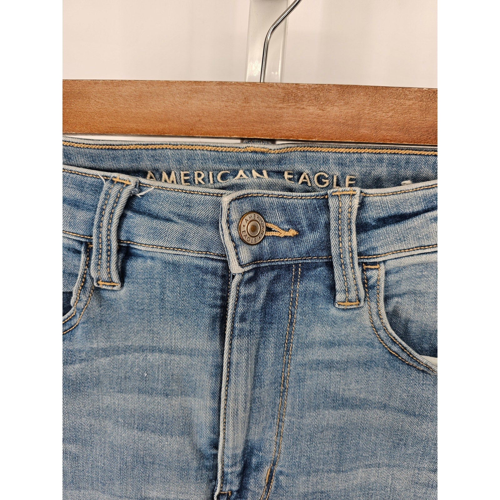 Elevate your casual style with these American Eagle super high-rise jeggings in a light wash. Made for women's size 6, these jeans offer a comfortable yet chic fit for any occasion. The classic design features an American eagle logo on the back pocket, adding a touch of authenticity to your look. Crafted with high-quality materials, these jeggings are durable and long-lasting. Perfect for a day out with friends or a night on the town, they can be paired with your favorite top and accessories for a complete outfit. Don't miss out on the chance to upgrade your wardrobe with these stylish jeggings from American Eagle.
