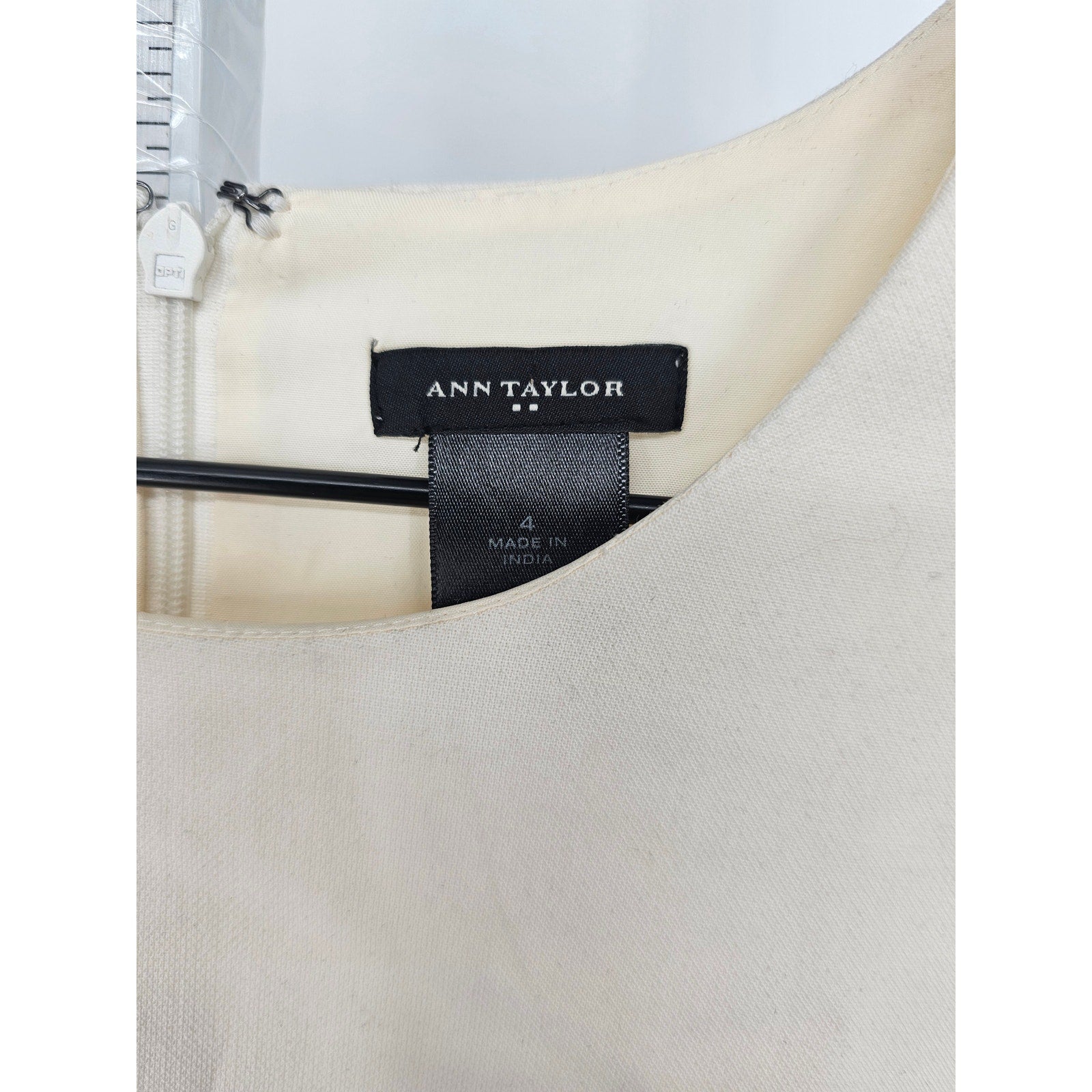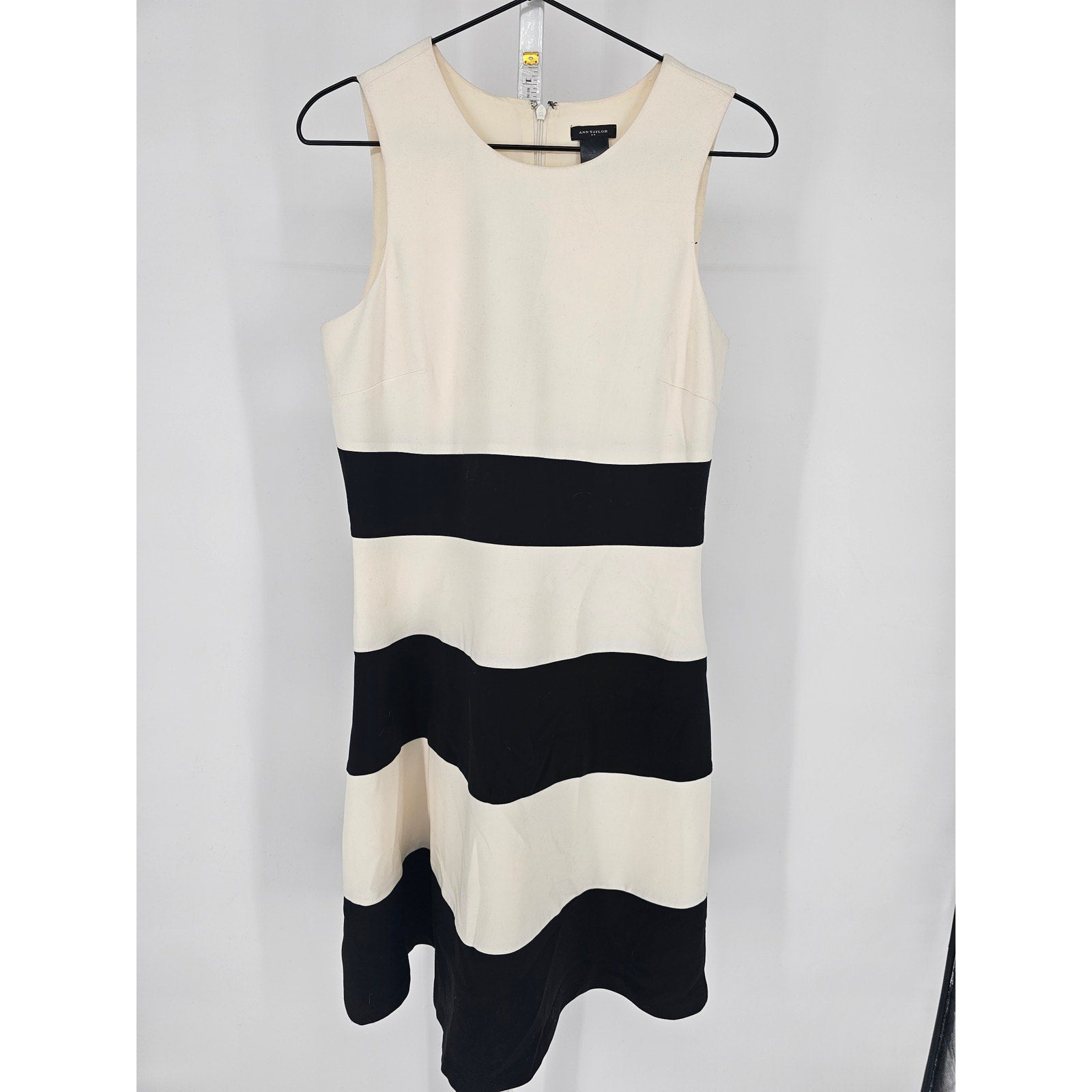 Ann Taylor Womens Sz 4 Knee Length Sleeveless Career Dress Cream Black Striped