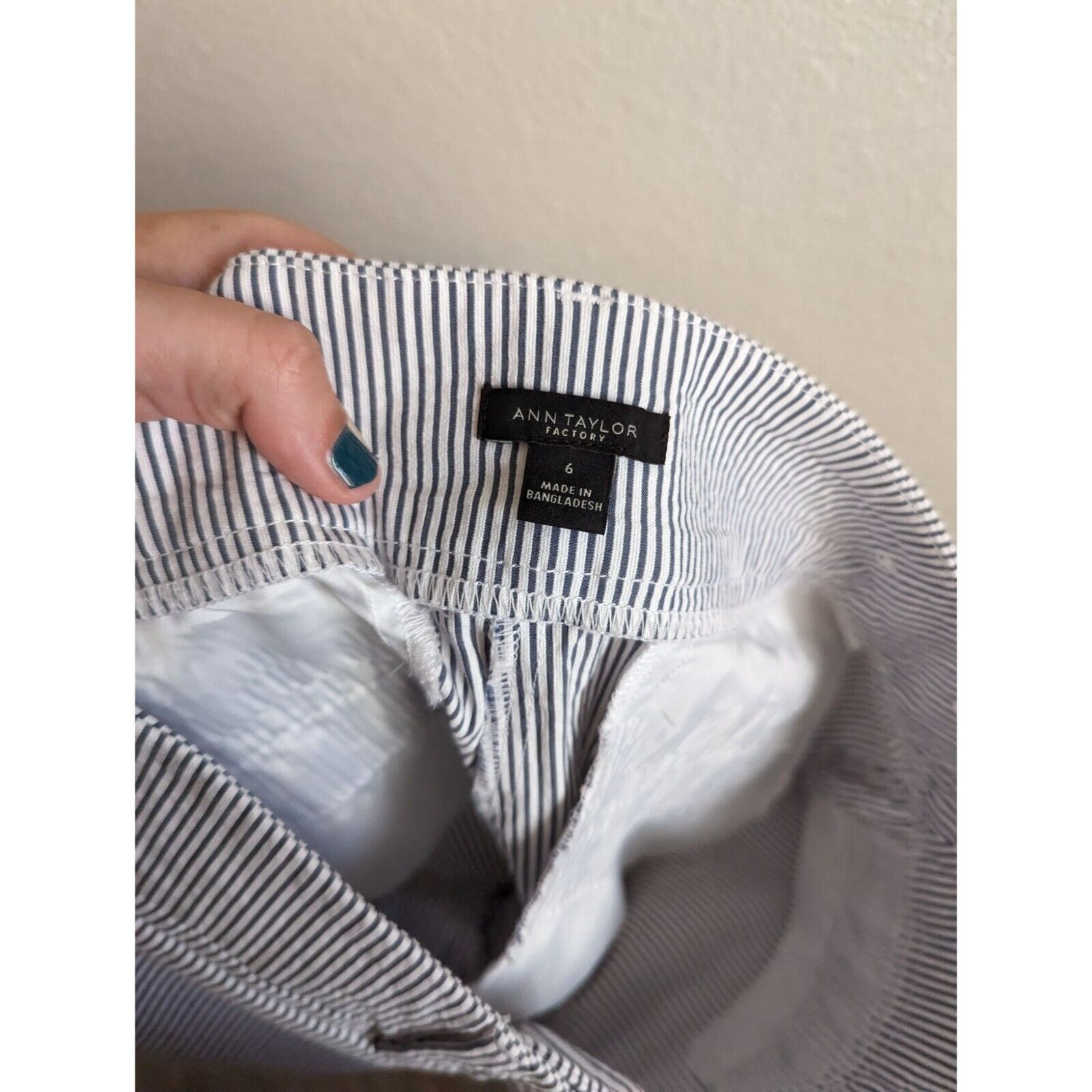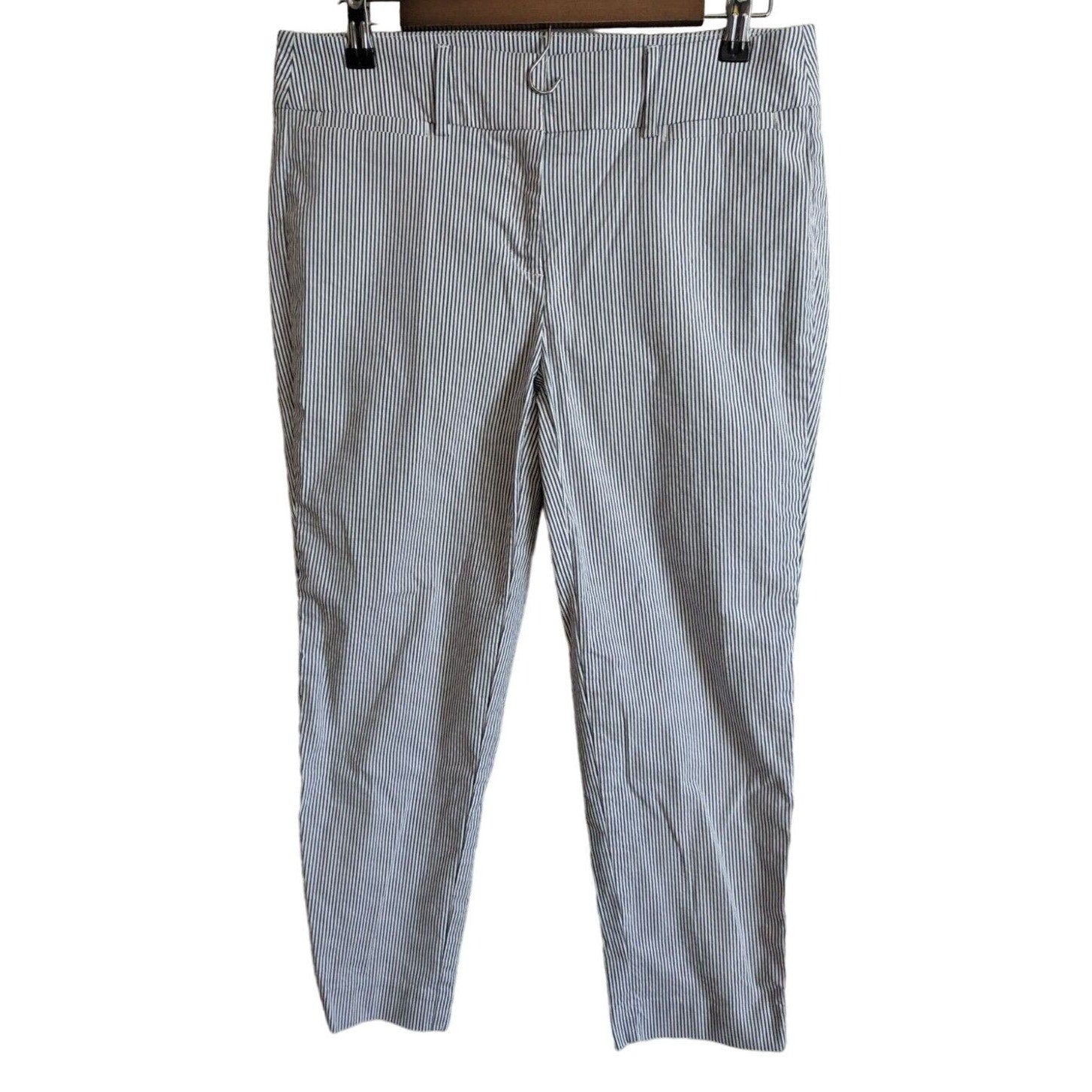 Ann Taylor Womens Sz 6 Cropped Seersucker Pants Slim Leg Blue White
