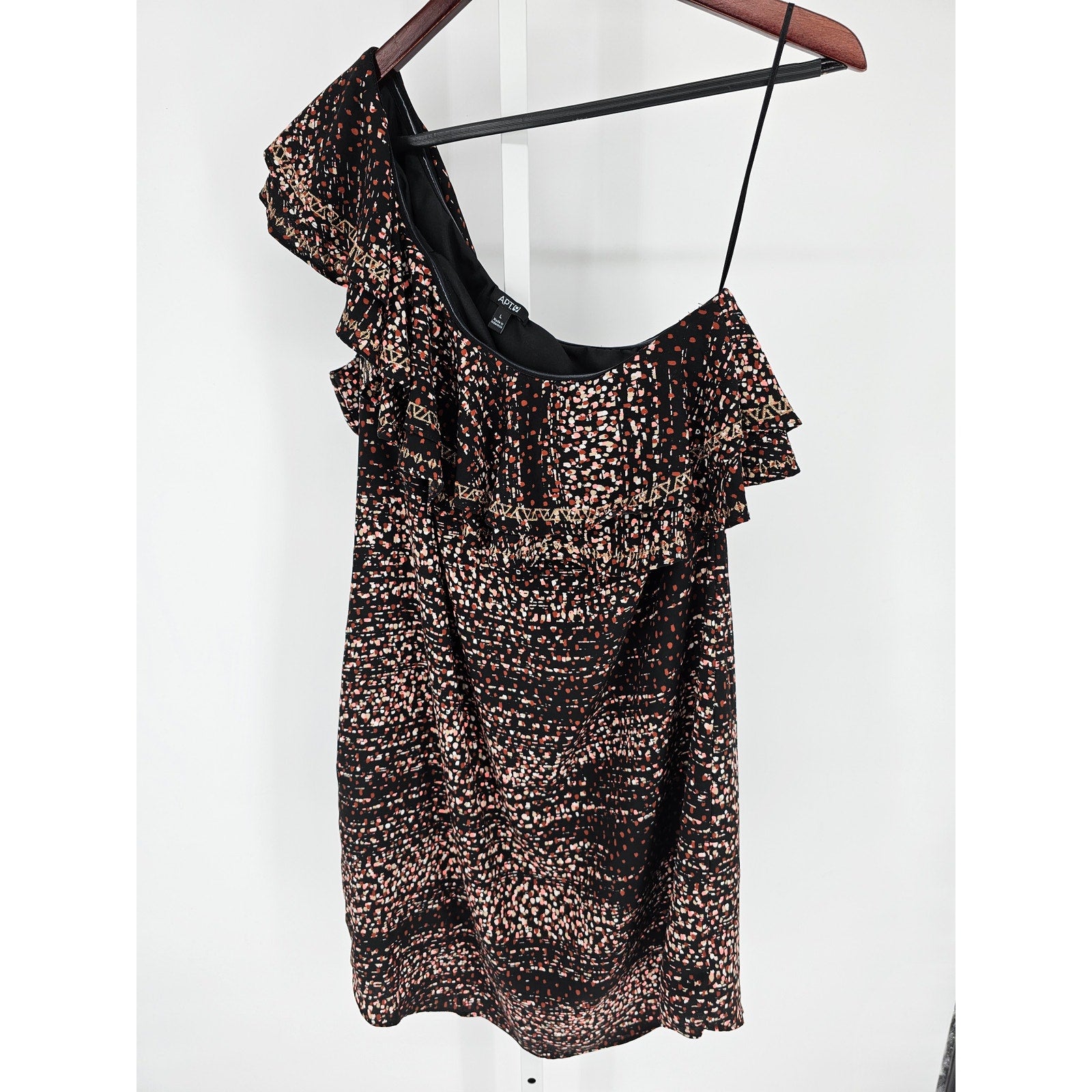 Apt 9 Womens Sz L One Shoulder Knee Length Cocktail Dress Black Pink Orange