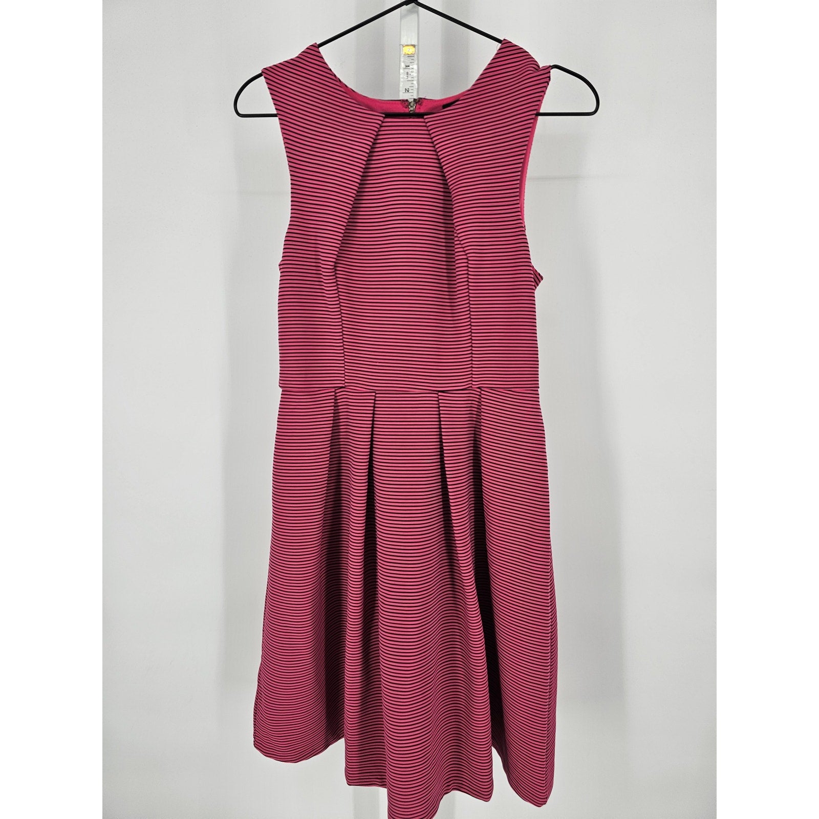 Ark & Co Womens Sz M Cap Sleeve Knee Length Dress Black Pink Stripe Thick Knit