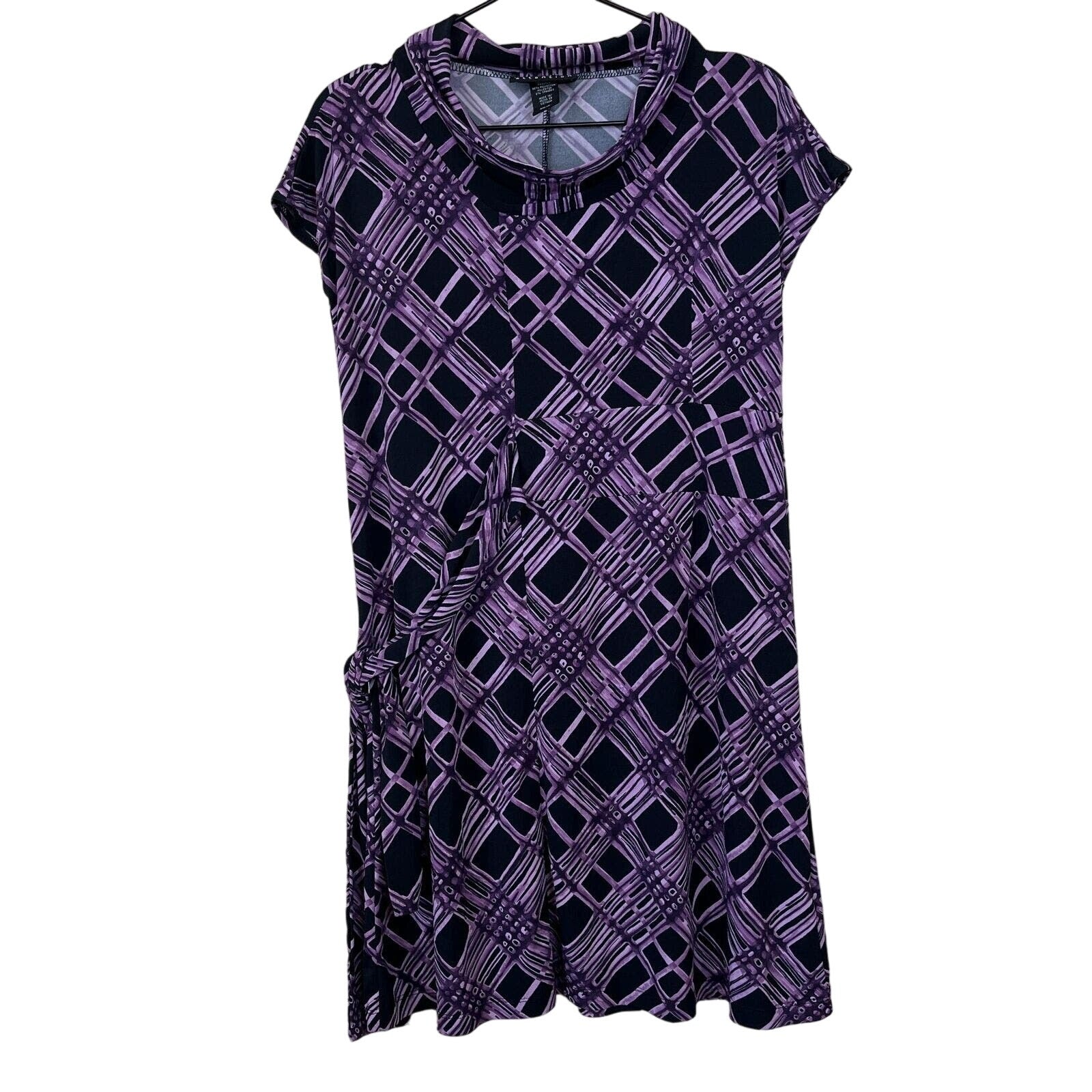 Attention Womens Sz XS Black and Purple Belted Dress Vintage Turtleneck